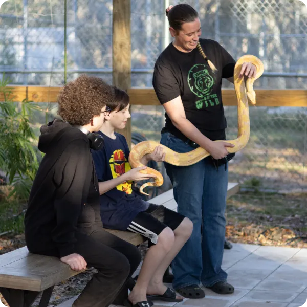 Our Founder, Jarrod Davis started in the Animal Entertainment industry many years ago and saw a need for life long homes for Exotic Animals. He also saw a great opportunity to help people get a clear picture of the serious threats that these animals and our world suffer from today. His goal is through interaction and education people will learn to love the animals, want to help the animals and in turn do their part to change the world!